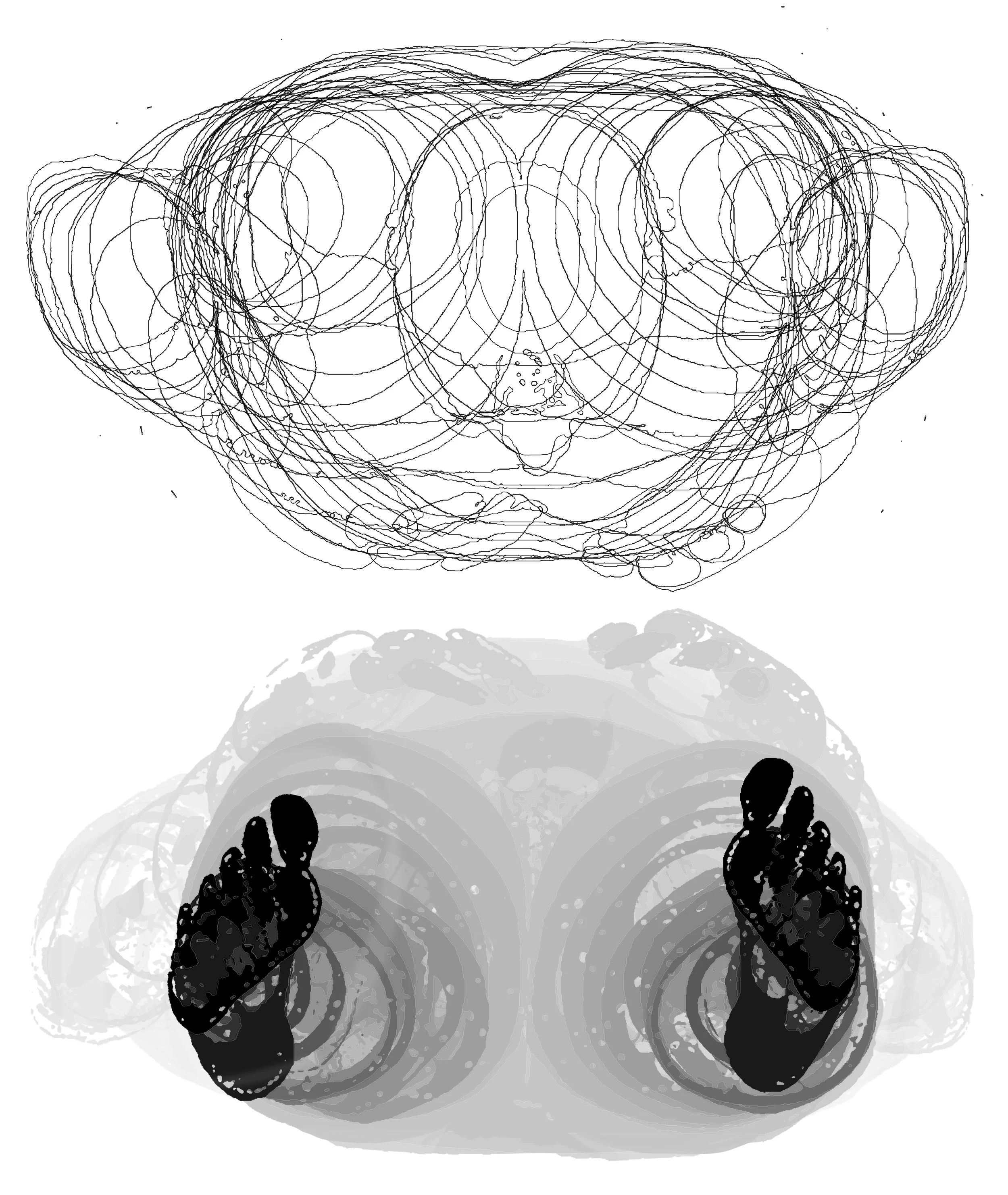 The suspended bodies are based on MRI imagery.